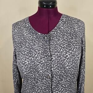 Women's Talbots Gray Cheetah Print 3/4 Sleeve Knit Cardigan | Size Large