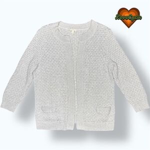 Women's Talbots Gray & Silver Textured Knit Open Front Cardigan – Small Petite