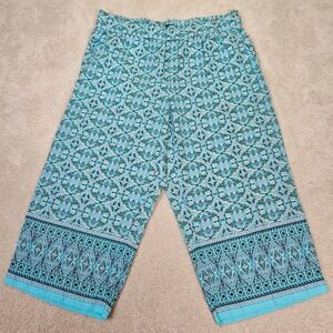 Womens Talbots Linen Nantucket Boho Blue Paisley Print Wide Leg Crop Pant Sz XLP