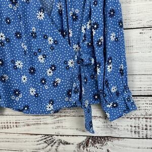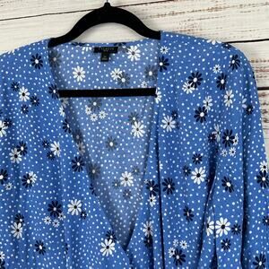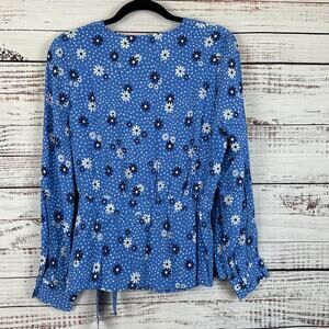 Women's Talbots NWOT Blue Black Floral Print Long Sleeve Wrap Blouse Career LP