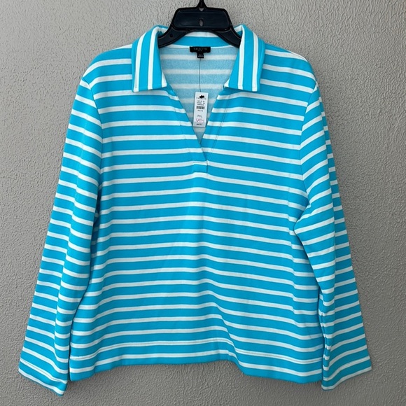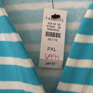 Women’s Talbots Petites Pullover Sweatshirt with Collar Striped, XLP, Blue White