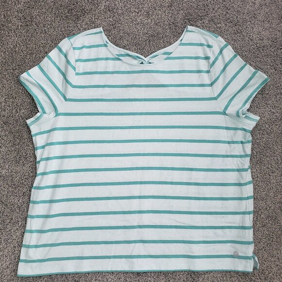 Women’s Talbots Plus Size 3X P Green Striped Cotton Blend Blouse, Like New Condition. Approx measurements in photo's