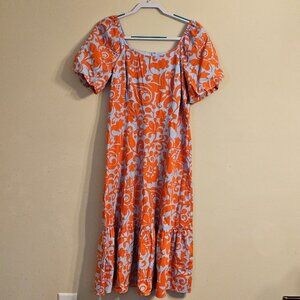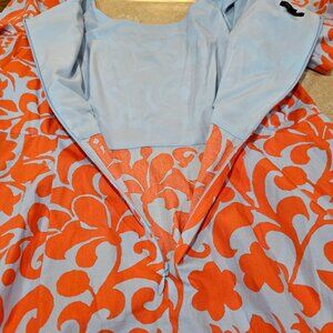 Women's Talbots Puff Sleeve Poplin Dress Jacobean Blue/Orange Size 6