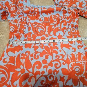 Women's Talbots Puff Sleeve Poplin Dress Jacobean Blue/Orange Size 6.  Shell: 100% Cotton. Lining: 100% Polyester.  The lining is only above the waist.