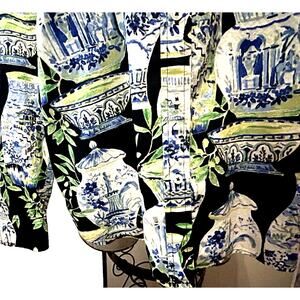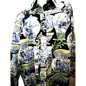 For sale is Women’s Talbots White And Cobalt Blue Chinoiserie Vases Blouse in Size Large 12 14..