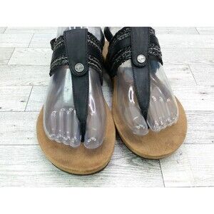Women's Tamaris Thong Sandals Black Straps Flats Size EU 38 US 7.5/8