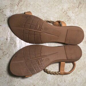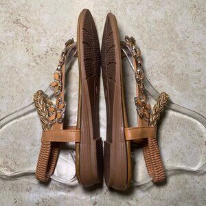 Womens Tan Beaded Floral Sandals Braided Strap Rhinestones Boho Fairy Cottage