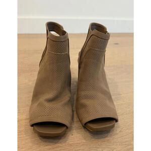 Women’s Tan Block Heel Peep Toe Perforated Ankle Booties Size 6