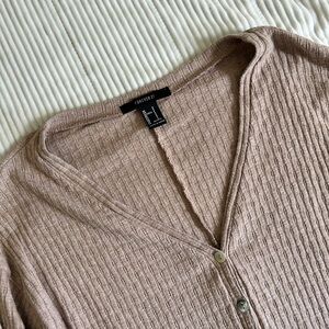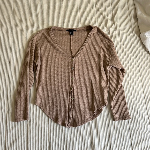 Women's Tan Button-Up Ribbed Top