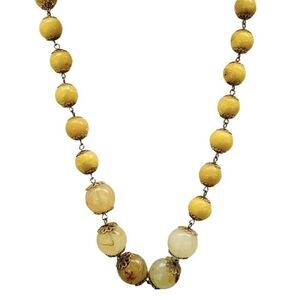 Women’s Tan & Clear Marbled Bead Gold Tone Princess Vintage Station Necklace 19”