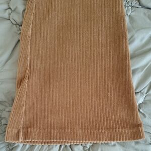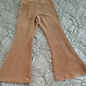 Cozy and stylish tan corduroy flare pajama pants for women. Perfect for lounging in comfort. Comfy and cozy pants... endlessly worn some signs of wear. size large short.