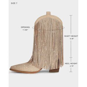 ⚡Women's Tan Cowgirl Western Boot Rhinestone with Sparkly Fringe Pointed Toe