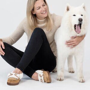Women's Tan Faux Fur Trapper Style Upper Wrap Memory Slipper Boot Shoes
