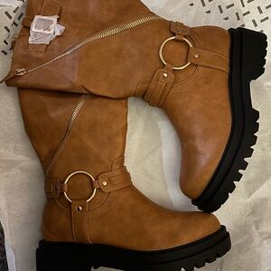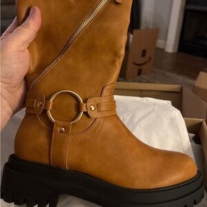 Women's Tan Leather Boots size 6. IdIfu. (050)