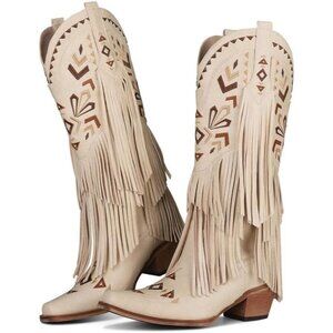 The beige tassel western boots for women has slip resistant rubber outside sole and comfortable inside sole. The comfortable sole makes walking easy and the comfy insole helps to protect your foot heel.