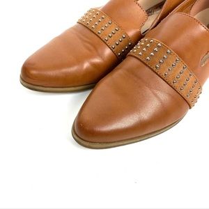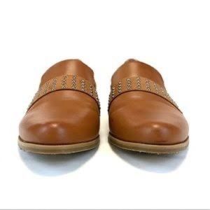 Step out in style with these chic tan loafers. Featuring a sleek design and studded detail, these shoes are perfect for any occasion.
