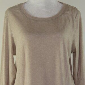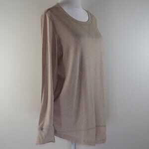 Women's Tan Long-Sleeve Pullover with Drop Tail Top Size L (C1652)