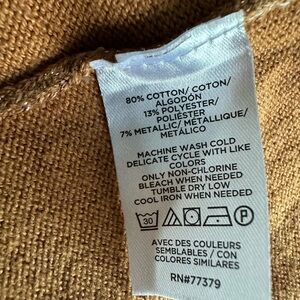 Stay cozy and stylish with this tan open-front sweater. Perfect for layering and adding a touch of warmth to any outfit. Please note this item has sparkles in the fabric that are not easily seen in the pictures.
