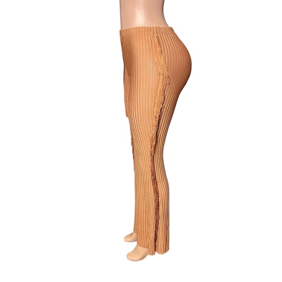 Elevate your style with these chic tan ribbed pants. Perfect for any occasion, they offer comfort and elegance.
