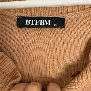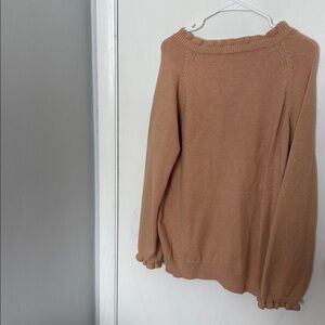 Women's Tan Ruffle Button Sweater