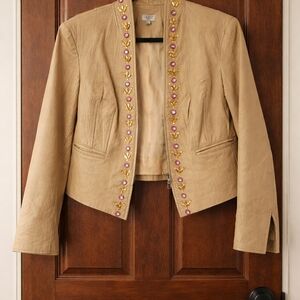 Women's Tan Ruffle Leather Jacket