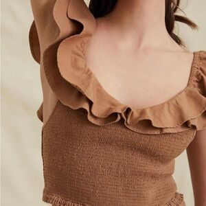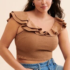 Women's Tan Ruffle Top