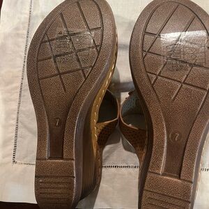 NWOT—Never Worn Step out in style with these sandals. Featuring a chic tan color, these shoes are perfect for any casual outing. Enjoy comfort and elegance with every step.