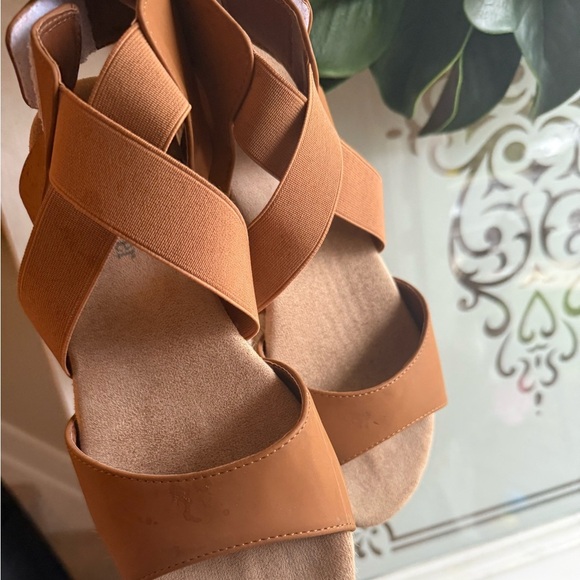 Step out in style with these chic tan sandals with a slight wedge, perfect for any occasion.