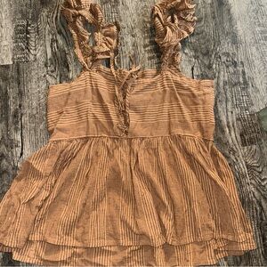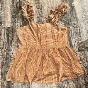 Stylish and comfortable tan sleeveless top with a unique design. Perfect for casual outings.