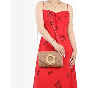 Women's Tan Summer Woven Beach Bag Envelope Evening Handbags Straw Clutch