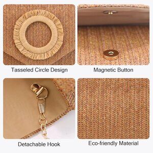 Stylish Straw Design:Combining a classic straw design with tassel round trim , a variety of colors are available to suit your summer options. Magnetic button with flap closure ,safe for you to place multiple items