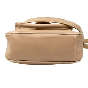 This bag is lined with tan lining that is in good condition no tears or staining. It has 1 zip pocket on the outside and 1 slip pocket under the front flap. On the inside there is one zip and 1 slip pocket. This purse has a top handle and a removable crossbody strap. It is gently used in excellent condition. Measurements: 7.5" (H) X 10" (L) X 3.75" (D) with a 3" top handle drop and a 12-24 adjustable crossbody strap.