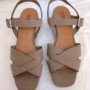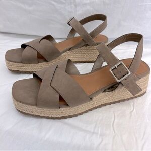 Step out in style with these chic tan wedge sandals. Perfect for any occasion, these sandals offer both comfort and elegance.