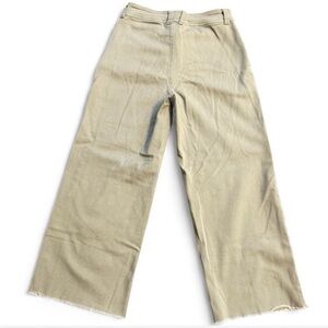 Stylish wide-leg,cropped jeans in a versatile beige, with a raw hem. Perfect for casual wear. Pair with any top for a trendy look.