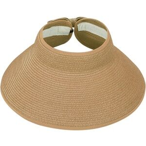 Women's Tan Woven Bow Sun Hat roll up 90% paper