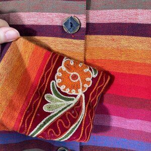 Womens Tan Zara Cotton Shirt Jacket Multicolored Stripes Flowers Red Orange PP
