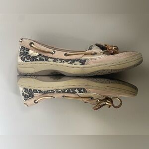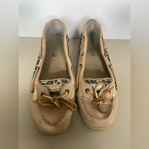 Women's Tan and Gold Boat Shoes size 5.5 fit like women’s 7 Angelfish Sperry