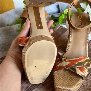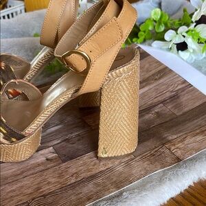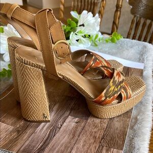 Step out in style with these platform sandals. Featuring a chic tan base with vibrant multicolor accents, these shoes are perfect for adding a pop of color to any outfit. The comfortable design ensures you can wear them all day long. ๐๐๐ Pre Owned but Never Used