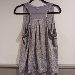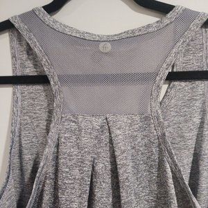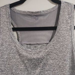 New without tags, racerback tank top. Loose fit. Top of back is vented and tucked as shown in photo. Fety brand. Gray and white color. 95% polyester/5% spandex.