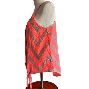 Womens Tank Top Large Coral Tan Chevron Tie Front Flowy Spaghetti Strap