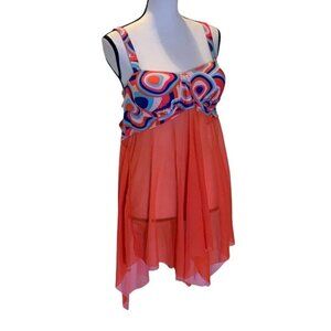 Women's Tankani Swimwear One Piece Size 18 Built In Underwire Bra Multicolor