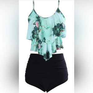 Women's Tankini Swimsuit Ruffled Tank Top Tummy Control Floral Modest Swimwear High Waisted Bikini Two Piece Bathing Suit