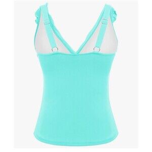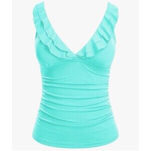 WOMEN'S TANKINI TOP ONLY TUMMY CONTROL BATHING SUIT TOP RUFFLE SWIMSUIT TOP V NECK SWIM TANK TOP NO BOTTOM.
