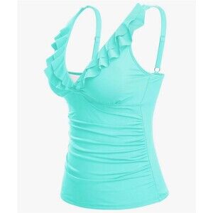 Women's Tankini Top Only Tummy Control Bathing Suit Top Ruffle Swimsuit Top