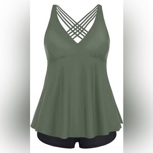 Aqua Eve Two Piece Tankini for Women Plus Size Bathing Suits Flowy Swimsuits with Shorts Athletic Swimwear. Built in Bra with Removable Pads. 14W. NWT