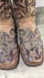 Up for sale is a good condition pair of Womens Tanner Mark Inlay Corded Cowboy Western Square Toe Leather Boots. Size 9 US. Leather uppers. Rubber heels and leather soles. From smoke-free home. Clean inside and out. Very well built and sturdy. Approximate Outside Dimensions: 11 inches heel to toe by 4.25 inches across the ball of footwear by 1.25 inches tall heels by 12.5 inches tall.
