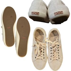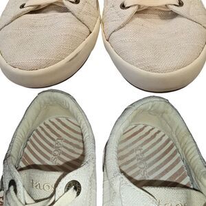 These Taos Star Beige Oat Washed Canvas Women's Shoes Size 8.5. Lace up, Polyurethane Curves and Pods footbed with Soft Support, Flexible, durable rubber. Used 2x's I wear a 8 but but they run small. So I had to get a 8.5 which was a perfect fit. Excellent condition!
