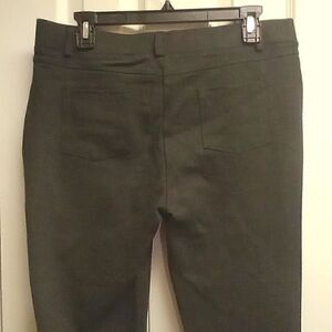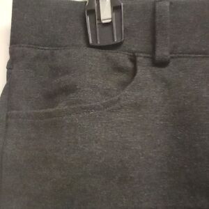 these are women's dress straight leg stretchy Tapata pants with a 28" inseam. the front has a fake fly and button closure. black in color. there is no fabric or care instruction tag available. these are NWOT.