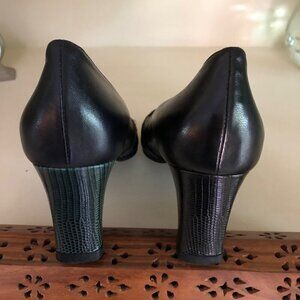 Women's Taryn Rose Black Leather Open Toe Vero Cuoio Italy Size 5 1/2