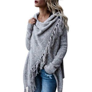 Women's Tassel Hem Sweater Long Cardigan Knitwer Pullover Poncho Coat